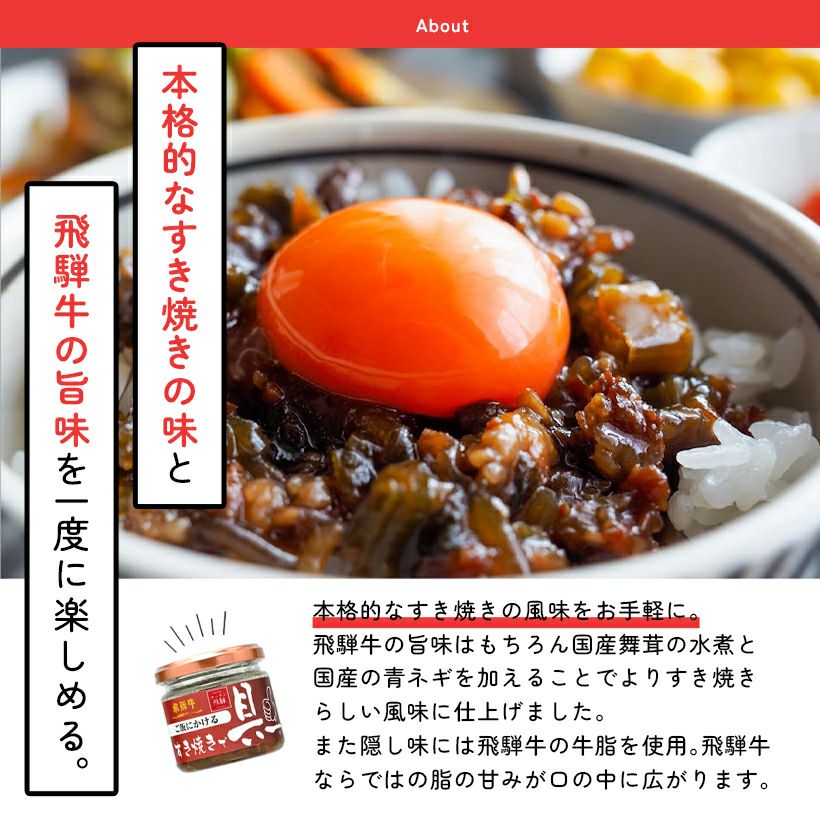 ●ご飯にかける飛騨牛すき焼きで具ー 内容量 120g×2瓶