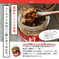 飛騨牛100%使用。いつでも手軽にハンバーグがお召し上がりいただけるよう瓶詰にしました。飛騨牛ならではの旨みや美味しさをご堪能いただけます。ご飯のお供はもちろん、様々なお料理にお使いいただけます。