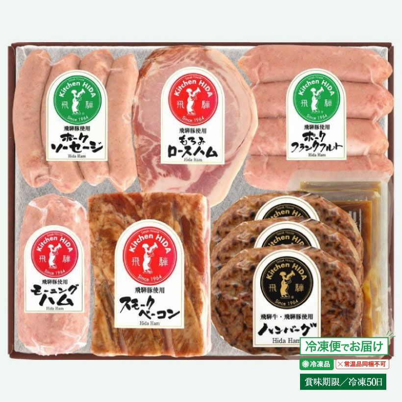 他の画像を見る キッチン飛騨オリジナルギフトセット120【冷凍便】【常温品・冷蔵品とは一緒にお送りできません(別々のカートでお買い求めください)】 冷凍便 常温品同梱不可 冷蔵便 価格 ¥ 7,722 税込 会員価格 ¥ 7,336 税込 飛騨豚の旨さを味わえる、こだわりのハムとポークソーセージのギフトセットです。 詳細を見る お気に入りに登録する